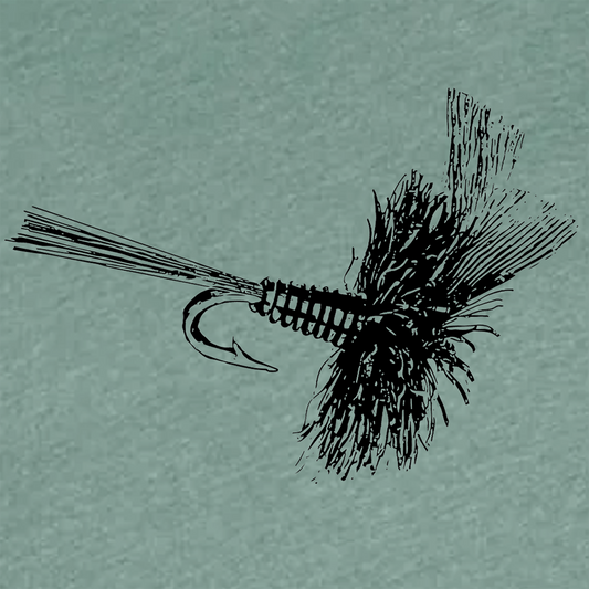Our trout is fly design features the top view of a trout designed out of various flies. This design looks great on our heathered tee shirts and our SPF 50 Sun Hoodies.